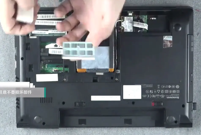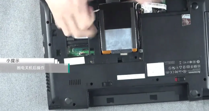 3、假如电脑硬盘松动,我们把电脑拆开,将硬盘进行重新拔插。