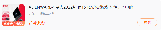 M15系列的配置最低的是10999款,也是最没有意思的版本,配置了10300H+8G内存+1650ti配置,是不是突然想起了灵越5000直接换壳?对,就是,也是最不值得买的版本,都上外星人了,气脉配置也要比其他主流游戏本差不多吧——其他的主力笔记本基本都是10750H+2060以上配置,M15最高配,10750H没变,加了2070 SUPER,送个感应音响