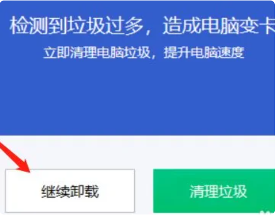 4、会弹出一个页面显示继续卸载和清理垃圾,点击继续卸载,完成。