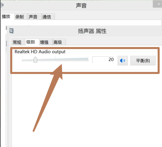 3、进入属性界面,转到级别的选项下,滑动音量按钮即可恢复声音。
