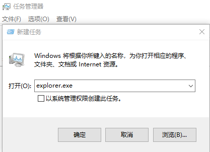 4.这时候在窗口中输入explorer.exe,接着按下确定桌面图标就能显示了。