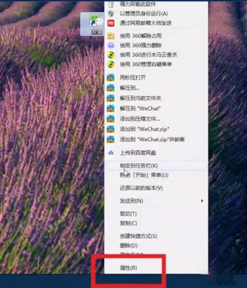 1、在电脑桌面上,右键点击微信图标,在弹出菜单中选择“属性”。