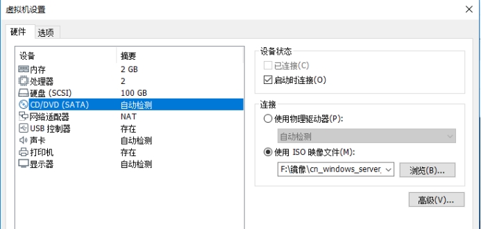 1. 安装虚拟主机,然后挂载Windows Server 2016 Standard镜像:cn_windows_server_2016_updated_feb_2018_x64_dvd_11636703.iso