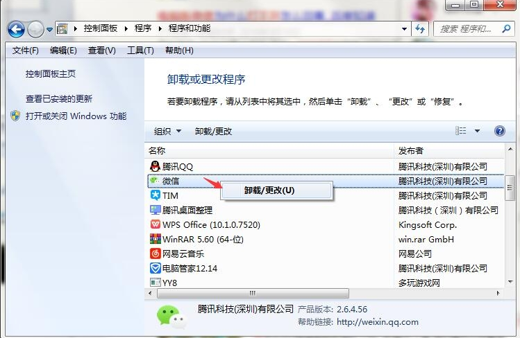 3、找到微信,单击鼠标右键卸载即可。