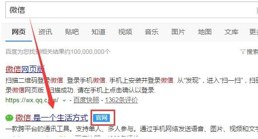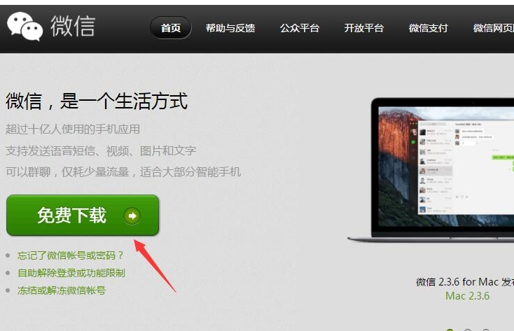 3、在电脑浏览器搜索“微信”,找到微信官网,点击免费下载按钮。