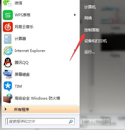 1、首先点击任务栏上的开始按钮展开菜单,再选择控制面板进入。