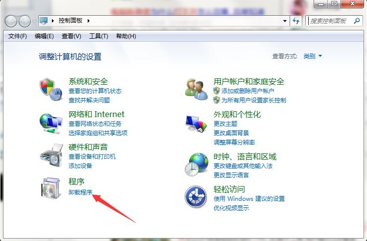 2、点击程序类别→卸载程序进入。
