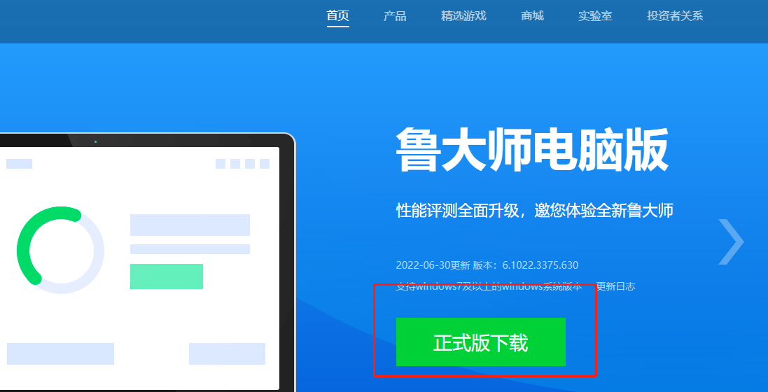 1、打开浏览器,进入鲁大师官网,点击下载;