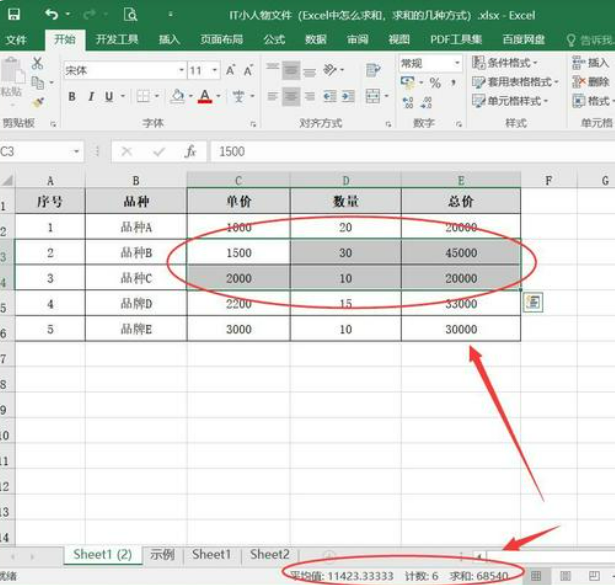 3、选中求和