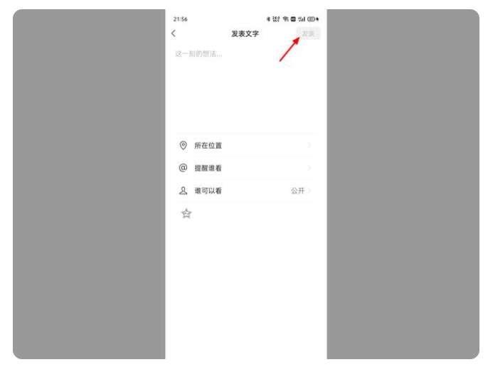 4、在发表文字界面,编辑要发表的文字内容,编辑完成后,点击右上角【发表】即可。
