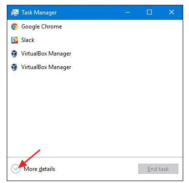 2、点击“更多详细信息”选项以获取在 Windows 中运行的所有任务的详细列表。
