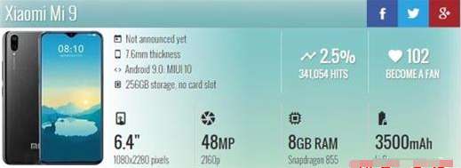 2、目前搭载的是高通最新处理器骁龙855处理器,GPU采用Adreno640,存储方面,小米9将使用6/8GB+128GB/256GB存储配置。