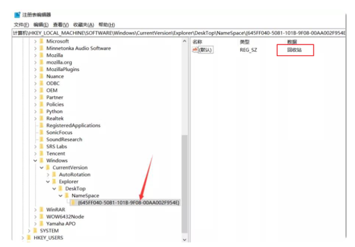 3、随后依次展开定位到:HKEY_LOCAL_MACHINE/SOFTWARE/Microsoft/Windows/CurrentVersion/Explorer/DeskTop/NameSpace。
