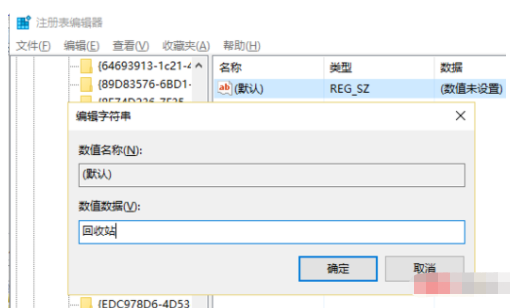 5、点击该新建项,将数值数据修改为“回收站”。6、最后重启电脑,打开回收站,即可看到原来被清空的文件都恢复了。