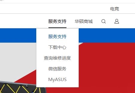 2,接着浏览器打开华硕官网,选择“服务支持”。