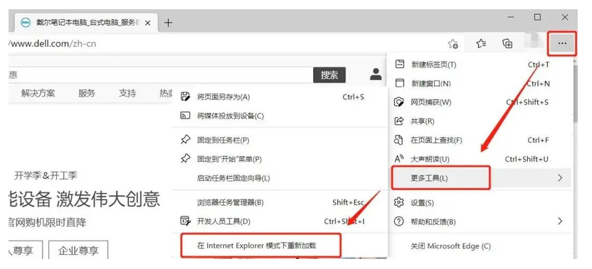 3.重启谷歌浏览器以后完成后,打开需要使用IE兼容的网页,在左侧菜单页面找到“更多工具”,选择“在Internet Explorer模式下重新加载的选项”,就可以用兼容模式打开当前页面了。