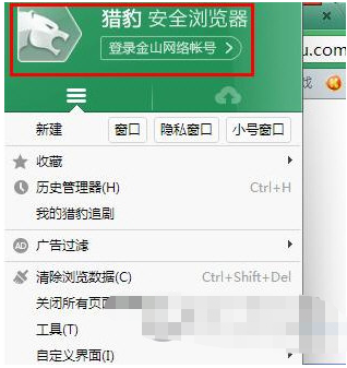 1、首先打开猎豹安全浏览器,若尚未登陆帐号,点击左上角登陆即可。