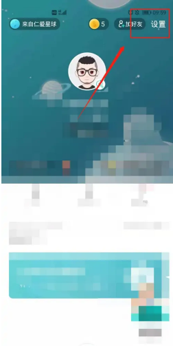 2、接着进入“自己”界面,点击右上方“设置”。