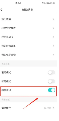 4、然后将通用设置里的“相机水印”开关改为关闭状态即可。