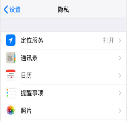 3、打开【隐私】,开启【定位服务】