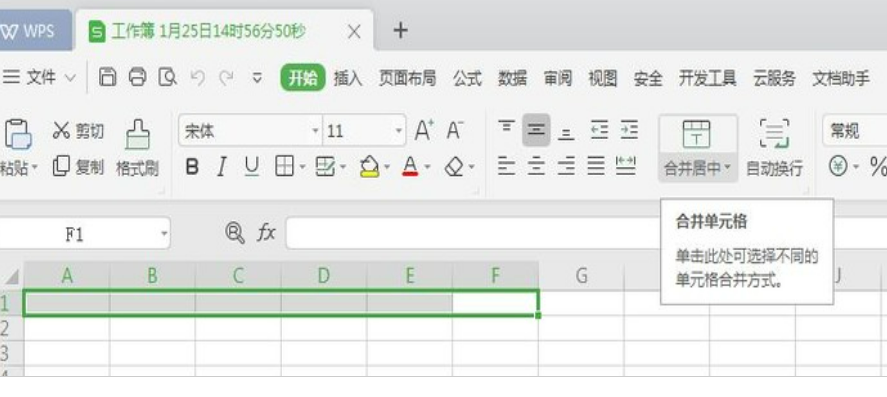 6、点击合并居中;