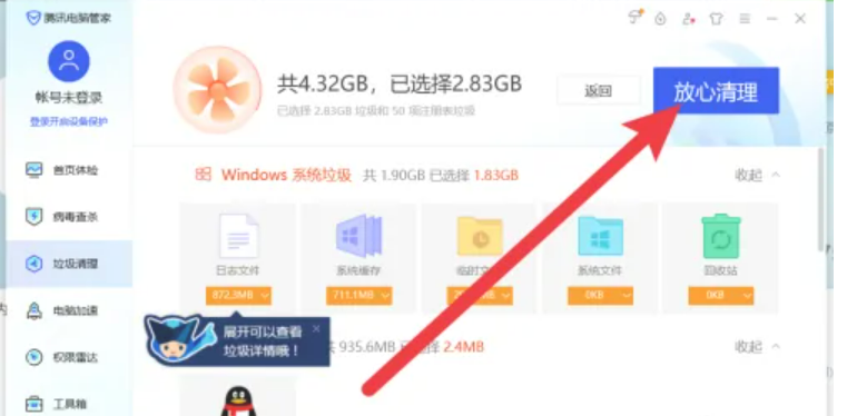 3、点击界面【放心清理】按钮完成清理。