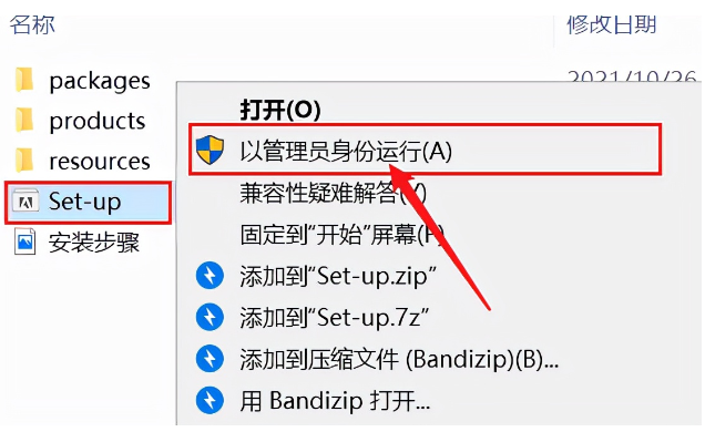 2、接着打开文件夹,找到【set-up】文件,鼠标右击【以管理员身份运行】即可。
