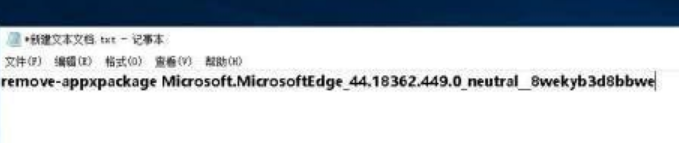 4、我们可以将它复制到记事本中,随后在它的前边添加“remove-appxpackage”