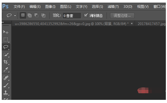 3、然后点击左侧功能区,选择第三个套索工具,并将需要去掉的文字部分进行圈选;4、随后点击顶部横排菜单栏里的编辑,选择填充或按shift+F5快捷键,在弹出的窗口中的“使用”选项框中选择“内容识别”,然后点击确定。5、最后按Ctrl+D即可将文字消除。