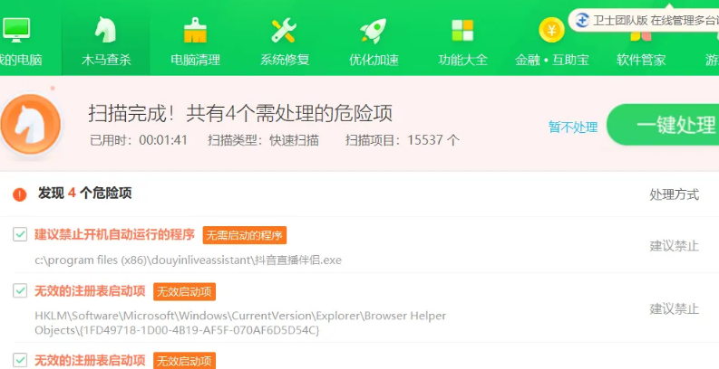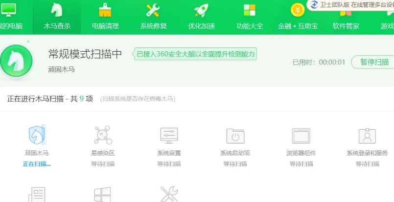 2、点击木马查杀,然后点击快速杀毒,软件就会自动扫描。