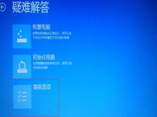 3.当电脑出现的疑难解答页面之后,点击"高级选项"。