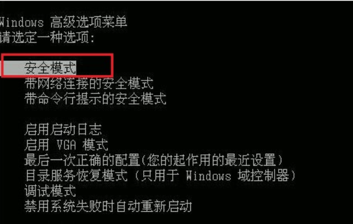 2、如果是电脑中病毒,开机按电脑上的F8键,选择通过键盘上的上下左右键,选择“安全模式”。