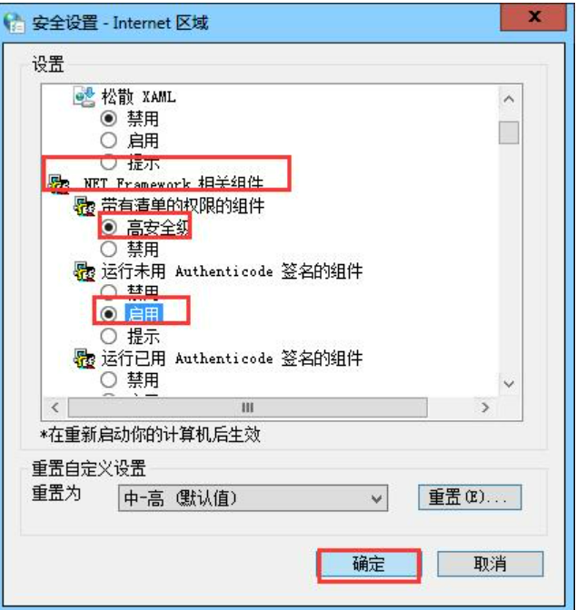 1、右击桌面Internet属性,然后点击“安全-自定义级别”,启用.NET Framework相关组件。