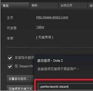 2、鼠标点击设置启动,接着输入-perfectworld steam即可设置完成。