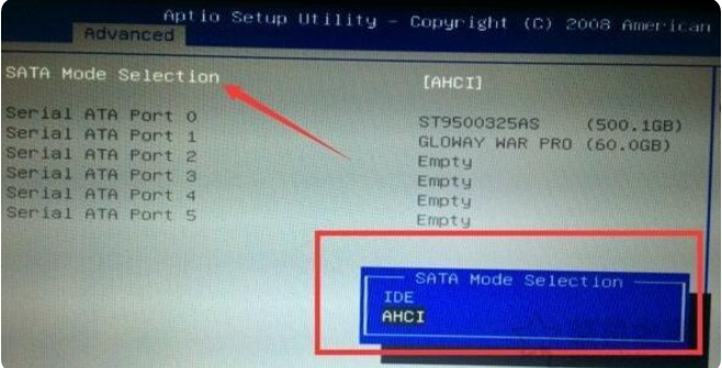 修改电脑模式,通过bios开启ahci模式: