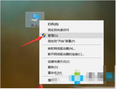 1、鼠标右键点击此电脑,点击管理进入计算机管理页面;