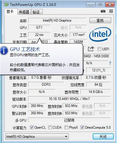 2、对于gpu-z给出的显卡的各项参数如果不懂没关系,可以将鼠标放在参数上,然后就会显示出说明,一目了然非常方便。