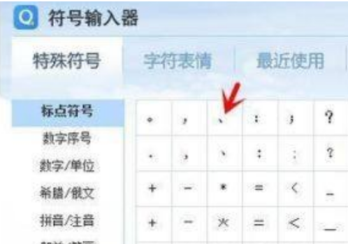 2、然后再符号界面,找到顿号选择即可。