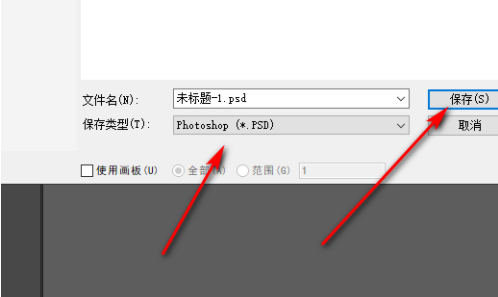 3、进入导出界面之后,选择导出PSD格式。
