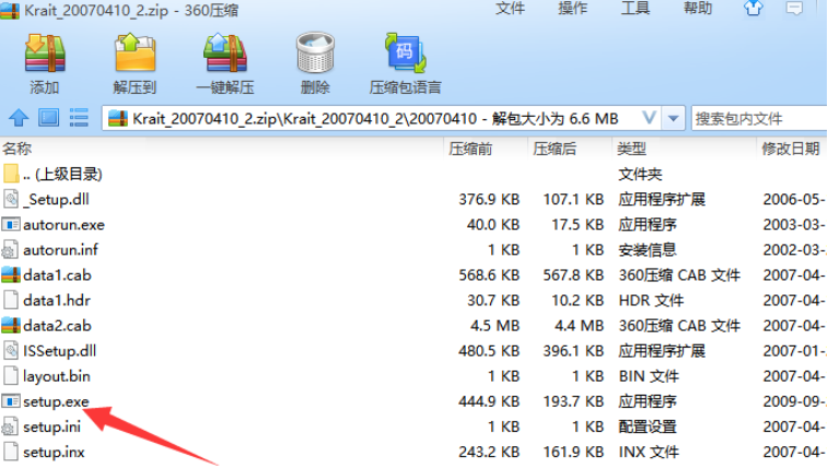 2、打开压缩包,找到里面的setup.exe应用程序双击。