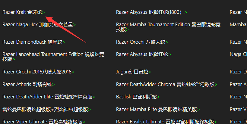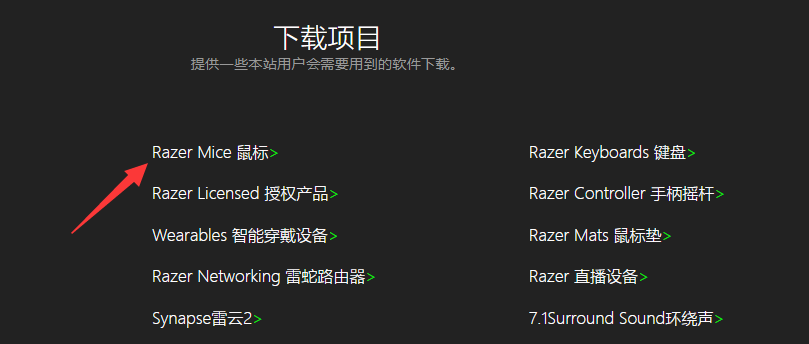 2、在下载项目下能看到所有系列的雷蛇产品,选择雷蛇鼠标产品进入。