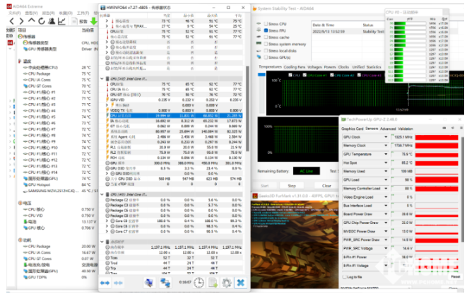 5.在AIDA64+FurMark的15分钟双烤机满载测试中,CPU+GPU的总功耗输出依然高达60瓦,其中CPU为21瓦,显卡为39.6瓦,还仍然维持了高能输出,荣耀散热系统的能力得到了有力的证明。