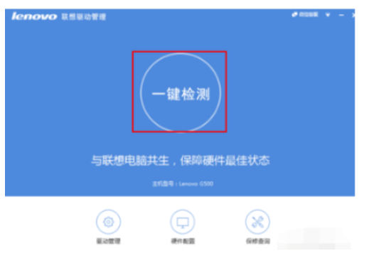 6.启动联想驱动管理后,点“一键检测”。