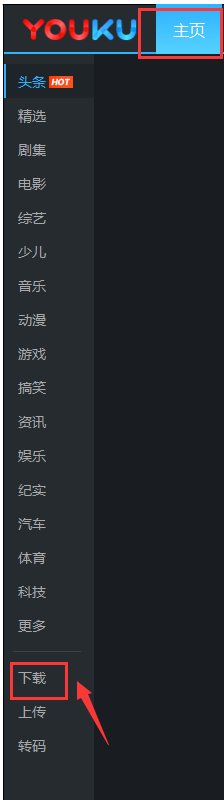 3、打开优酷pc客户端界面,选择左侧菜单栏的下载选项。