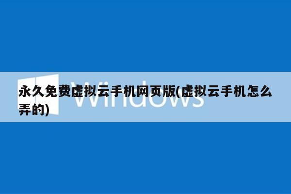 永久免费虚拟云手机网页版(虚拟云手机怎么弄的)
