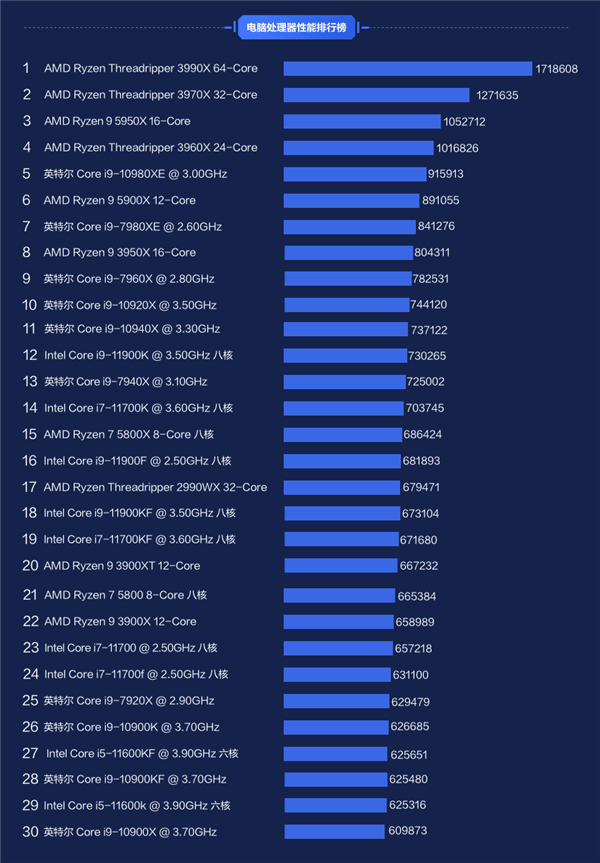 台式机CPU排行榜天梯图一览