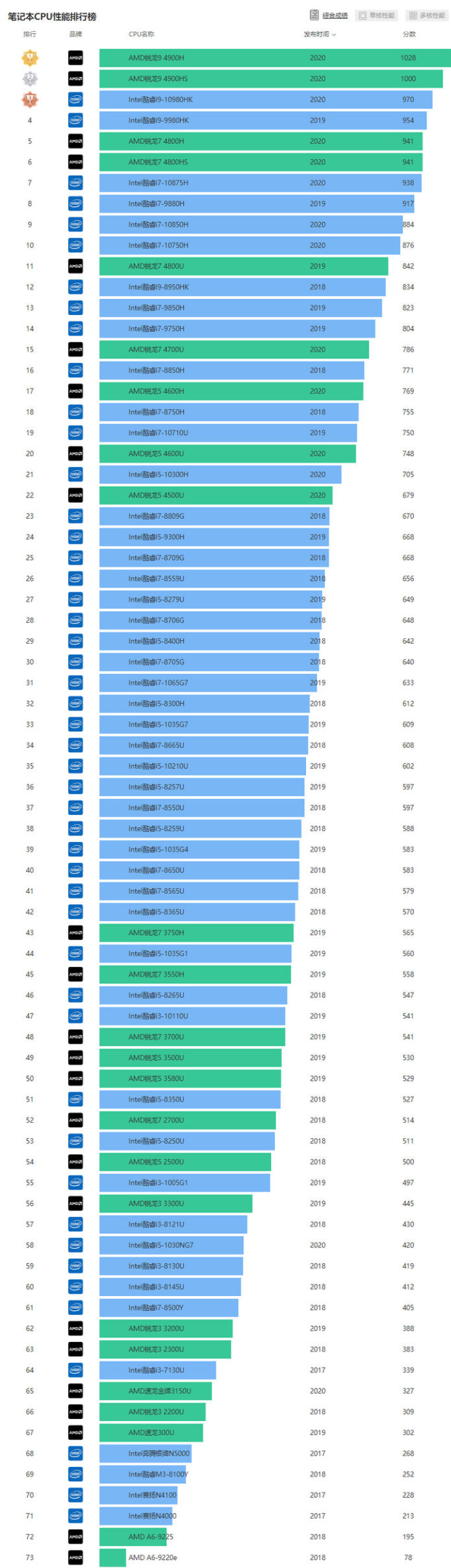 2021年6月笔记本cpu排行天梯图的详细介绍