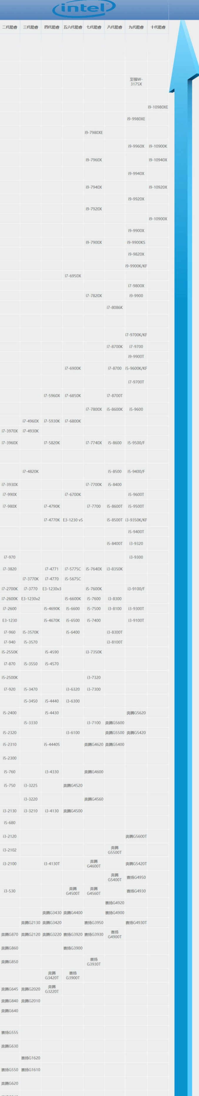 英特尔和amd是两大cpu生产产商,有很多网友习惯用的都是英特尔的cpu处理器产品.有网友想了解目前英特尔cpu性能排行情况,下面小编就给大家分享下2021英特尔cpu性能天梯图最新版做参考.