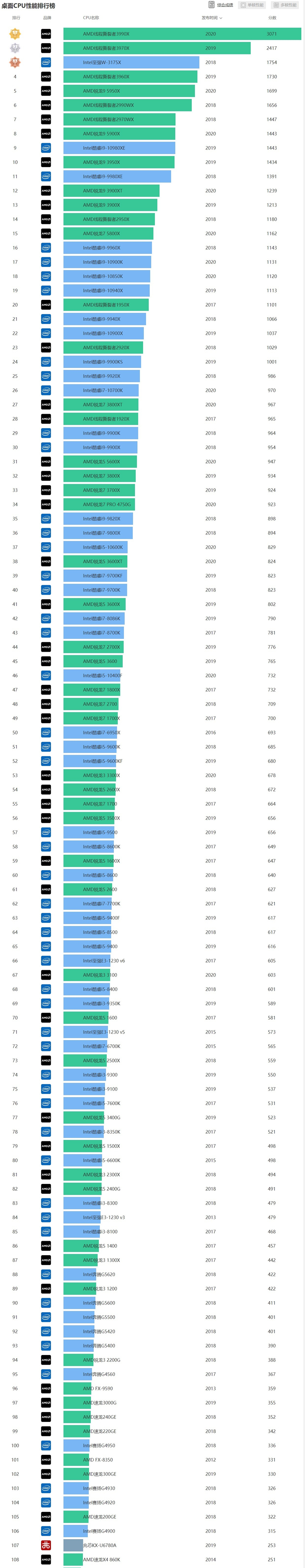 2021年9月新版cpu天梯图介绍