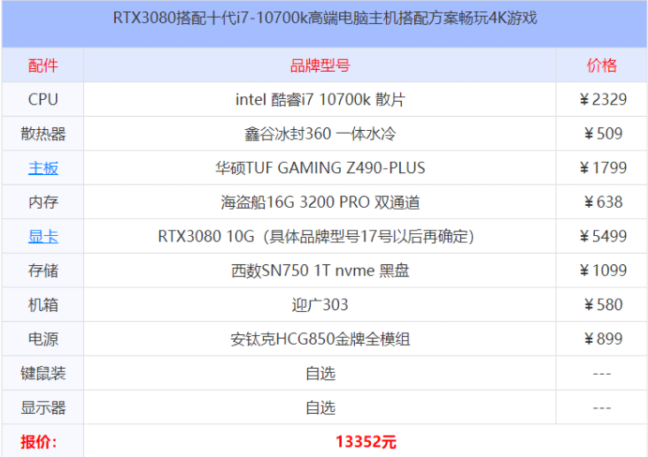 2021/08/13 i7电脑主机最佳配置i7搭配主机配置推荐i7电脑配置